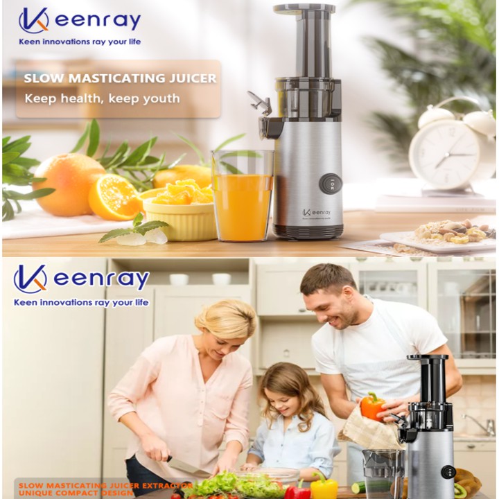 - Máy ép chậm Keenray EL10 có kiểu dáng nhỏ gọn, chiều cao chỉ 35.5cm và trọng lượng 2.05kg. Chiếc máy ép chậm mini này chỉ nhỏ bằng 1/3-1/4 những chiếc máy ép chậm cồng kềnh mà bạn thường thấy. Bạn có thể đặt máy ở bất cứ góc nào trong căn bếp của bạn mà không lo máy chiếm nhiều diện tích. Máy cũng dễ dàng mang theo.