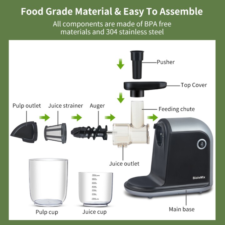 Máy ép trái cây tốc độ chậm, công suất 150W. Thương hiệu Biolomix SJE-070 (Chính Hãng Bảo Hành 1 Năm)