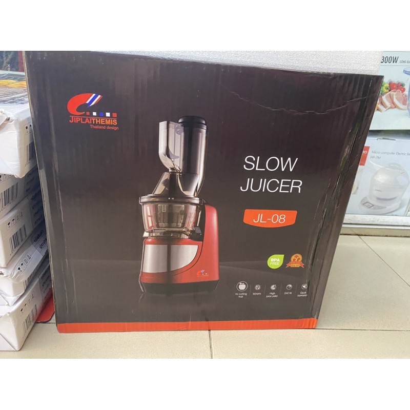 Máy ép hoa quả chậm Jiplai JL-08Máy ép hoa quả chậm Jiplai JL-08 khỏe máy hoạt động êm độ bền cao, ép kiệt nước trong hoa quả. Ép hoa quả bằng dòng máy ép chậm Jiplai JL 08 đậm vị giữ nguyên màu tươi tự nhiên, không lẫn nhiều bã vào nước. Tốc độ vòng quay chậm nên giữ lại được nguyên vitamin và dưỡng chất trong trái cây. Máy ép chậm Jiplai 08 Ép được cả các loại quả cứng như ổi cà rốt, rau má, cần tây,…