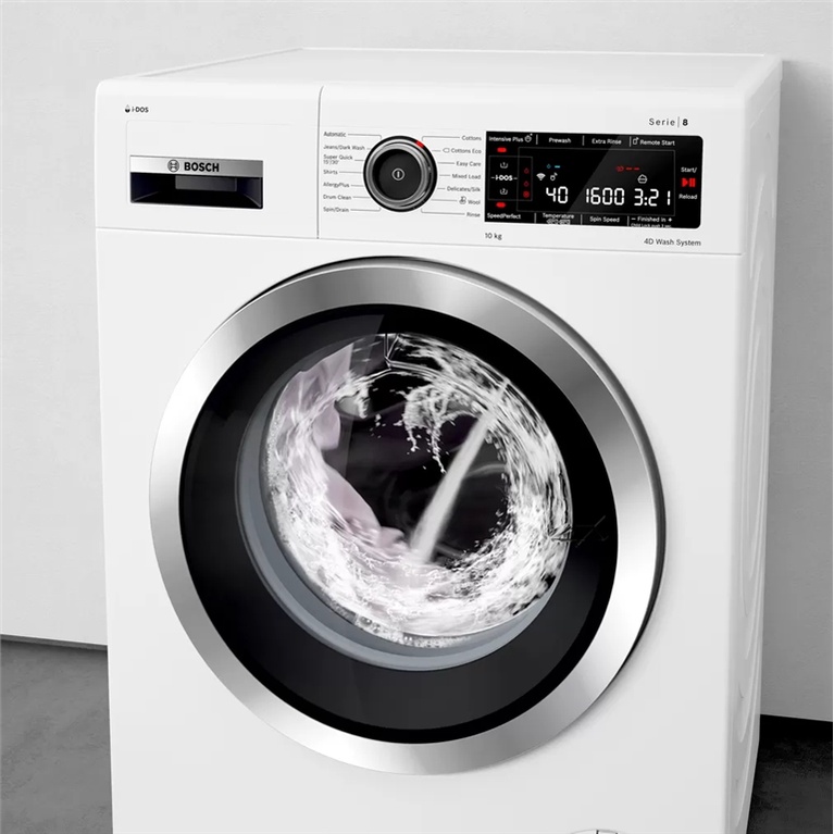 - Hệ thống giặt 4D mới giúp thiết lập tiêu chuẩn mới của máy giặt. Với công nghệ này, nước và chất tẩy rửa được phun tập trung vào khoang lồng giặt theo tốc độ quay của lồng. Điều này giúp đồ giặt được làm ẩm đều hơn và tốt hơn, bột giặt được sử dụng hiệu quả hơn thậm trí trong trường hợp sử dụng đầy tải