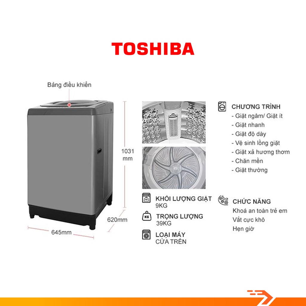 Giới thiệu Máy Giặt Cửa Trên Toshiba 9 Kg AW-H1000GV SB - Bảo Hành Chính Hãng