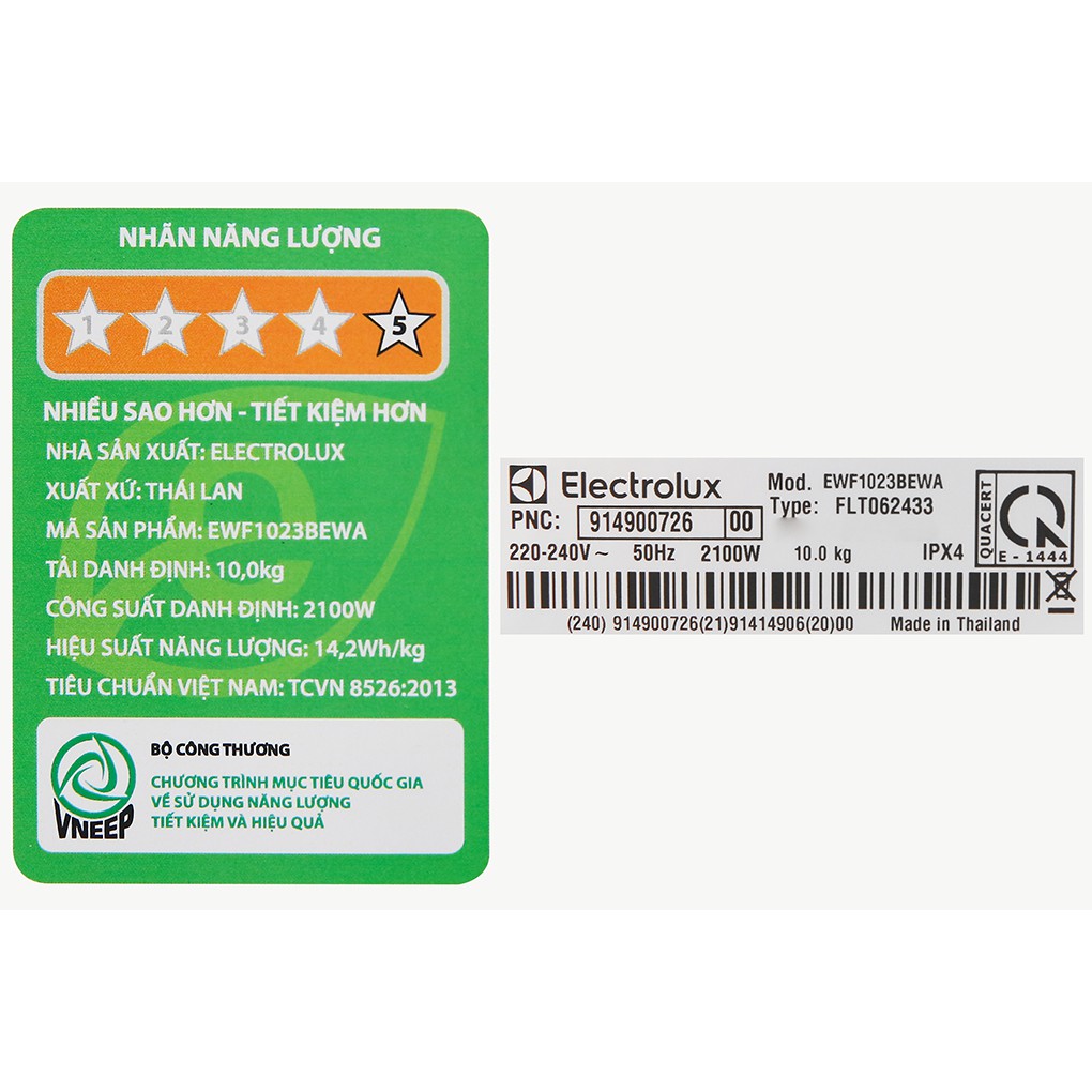 Thông số kỹ thuật chi tiết Máy giặt Electrolux Inverter 10 kg EWF1023BEWAThông tin chung