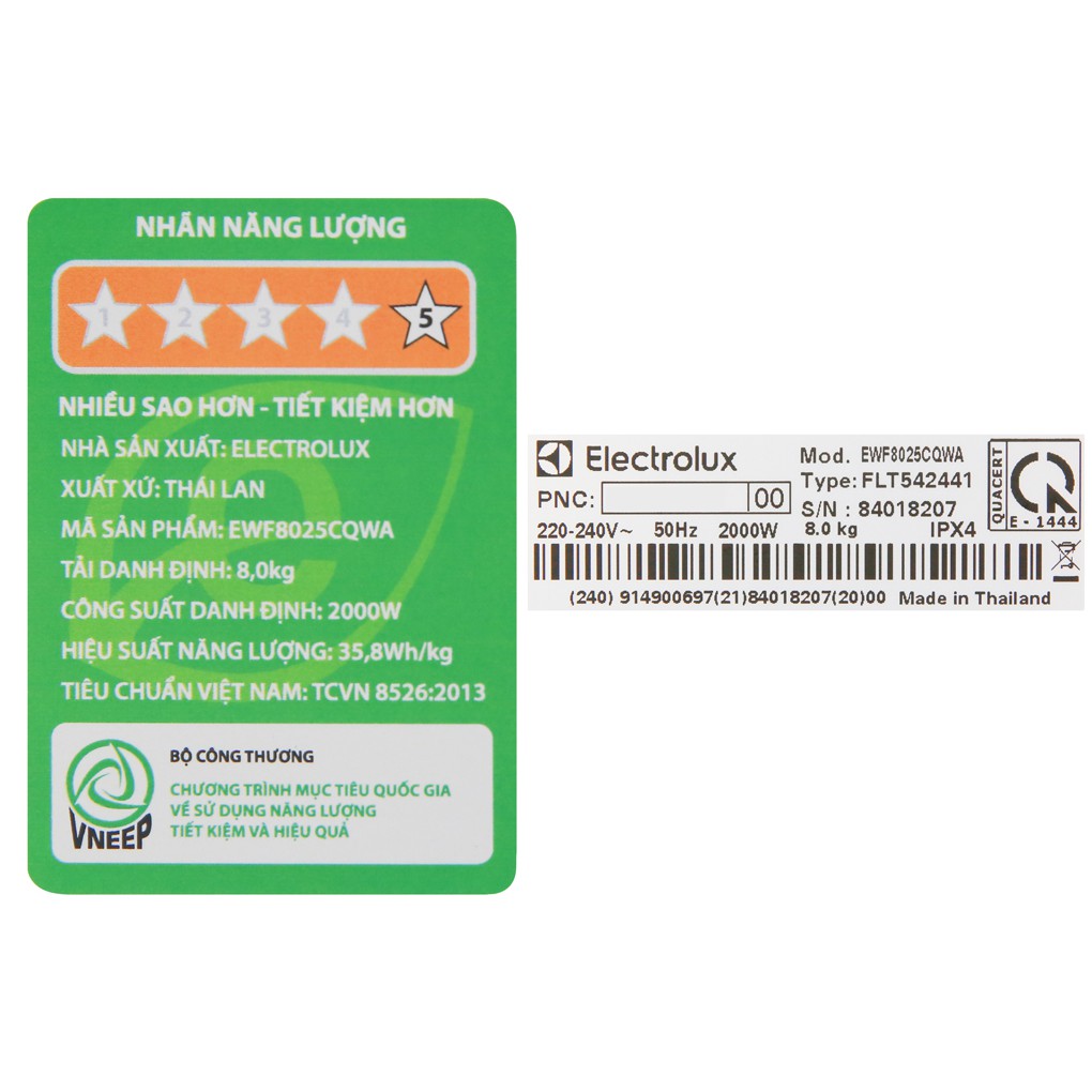 Thiết Bị Điện Gia Dụng > Thiết bị điện gia dụng lớn > Máy giặt & Máy sấy > Máy giặt || [Mã 44ELSALE1 giảm 5% đơn 3TR] Máy giặt Electrolux Inverter 8 kg EWF8025CQWACòn hàng