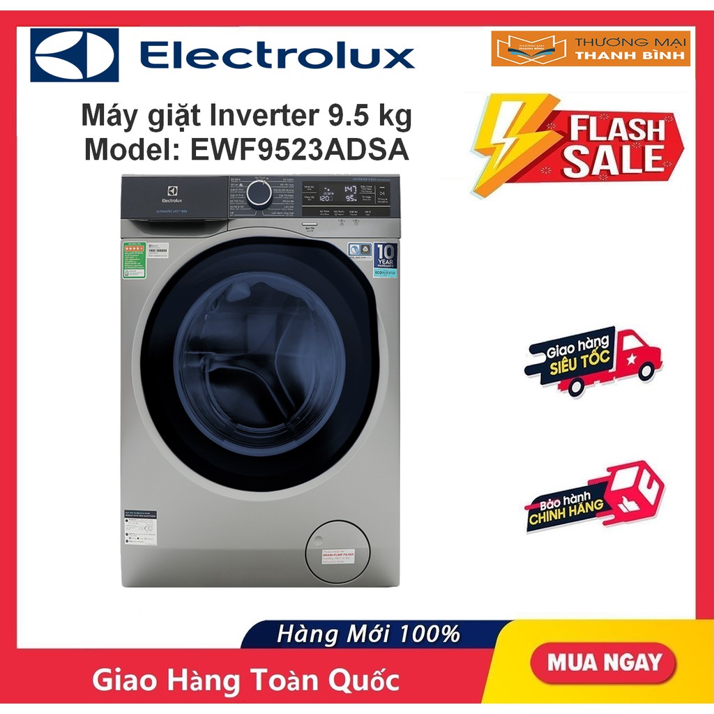 Thiết Bị Điện Gia Dụng > Thiết bị điện gia dụng lớn > Máy giặt & Máy sấy > Máy giặt || [Mã 44ELSALE1 giảm 5% đơn 3TR] Máy giặt Electrolux Inverter 9.5 kg EWF9523ADSACòn hàng