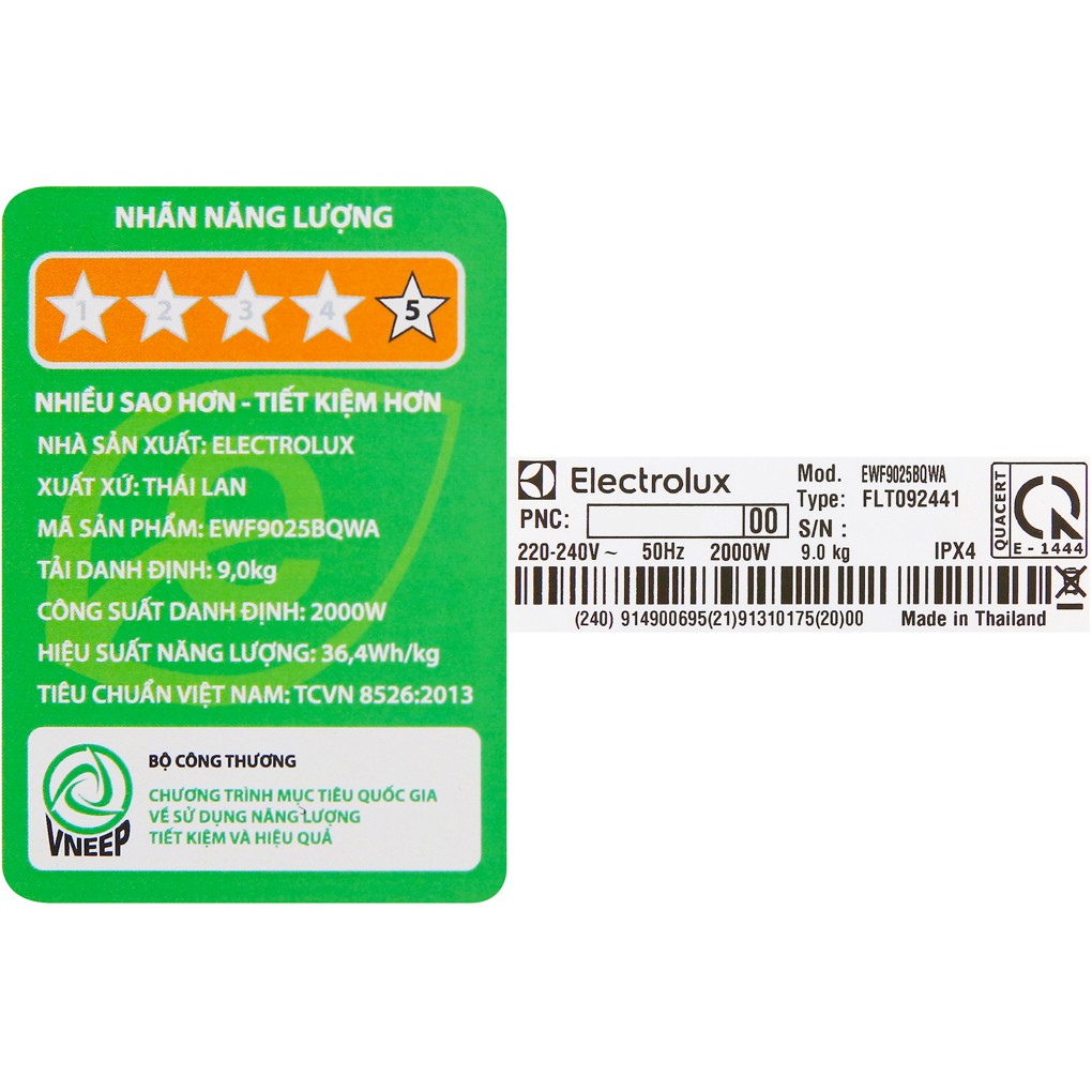 Thiết Bị Điện Gia Dụng > Thiết bị điện gia dụng lớn > Máy giặt & Máy sấy > Máy giặt || [Mã 44ELSALE1 giảm 5% đơn 3TR] Máy giặt Electrolux Inverter 9 kg EWF9025BQWACòn hàng