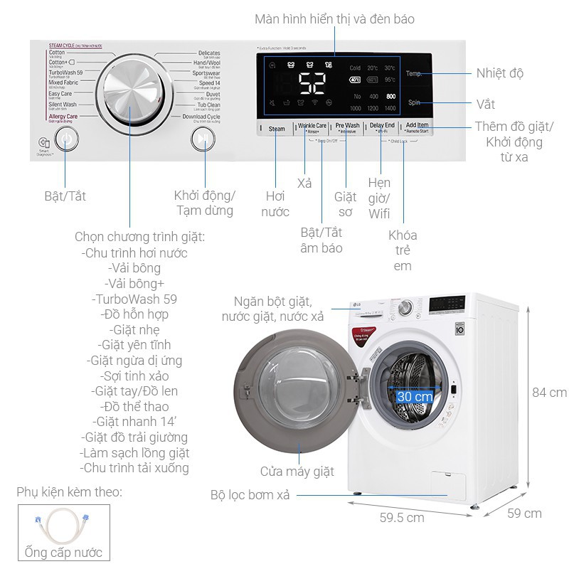Với hai cơ chế diệt khuẩn linh hoạt là giặt nước nóng và giặt bằng hơi nước mà các chất giặt tẩy được hòa tan tốt hơn, quần áo sau khi giặt sẽ được loại bỏ tối ưu các tác nhân gây dị ứng cũng như vi khuẩn, rất phù hợp với những gia đình có trẻ nhỏ, người mẫn cảm.