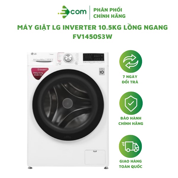 Thiết Bị Điện Gia Dụng > Thiết bị điện gia dụng lớn > Máy giặt & Máy sấy > Máy giặt || [Mã ELMALL1TR giảm 5% đơn 3TR] Máy giặt LG INVERTER 10.5KG FV1450S3W lồng ngangCòn hàng