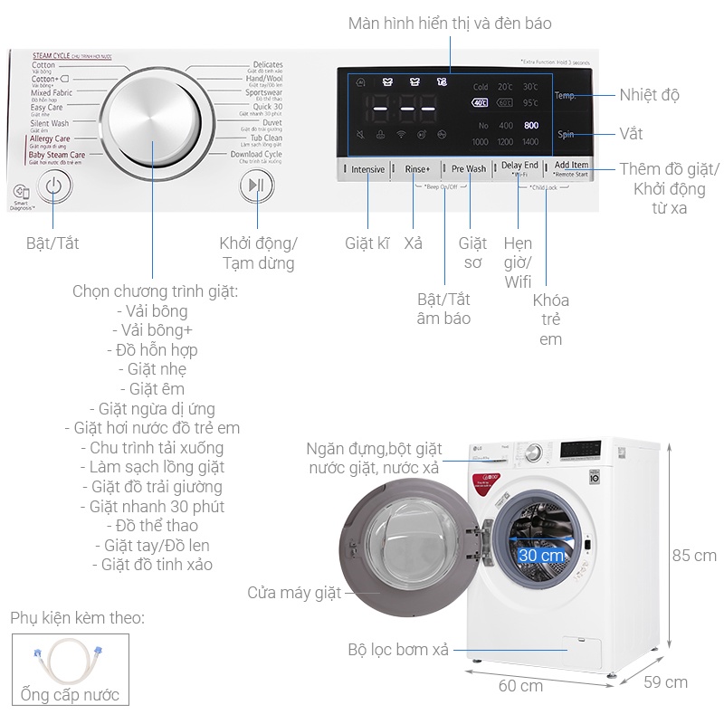 Thiết Bị Điện Gia Dụng > Thiết bị điện gia dụng lớn > Máy giặt & Máy sấy > Máy giặt || Máy giặt LG lồng ngang 8.5 kg ( Trắng ) FV1408S4WCòn hàng