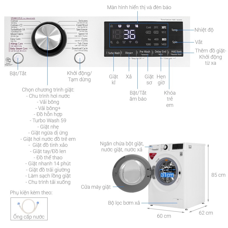 Công nghệ giặt hơi nước Steam (cửa trước)