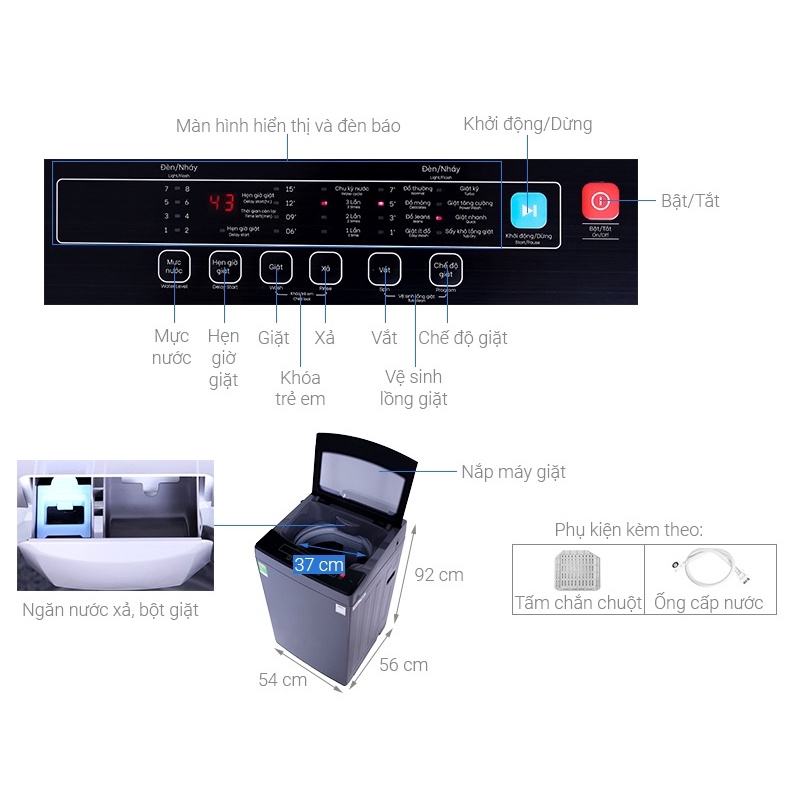 Thông số kỹ thuật Máy giặt Casper