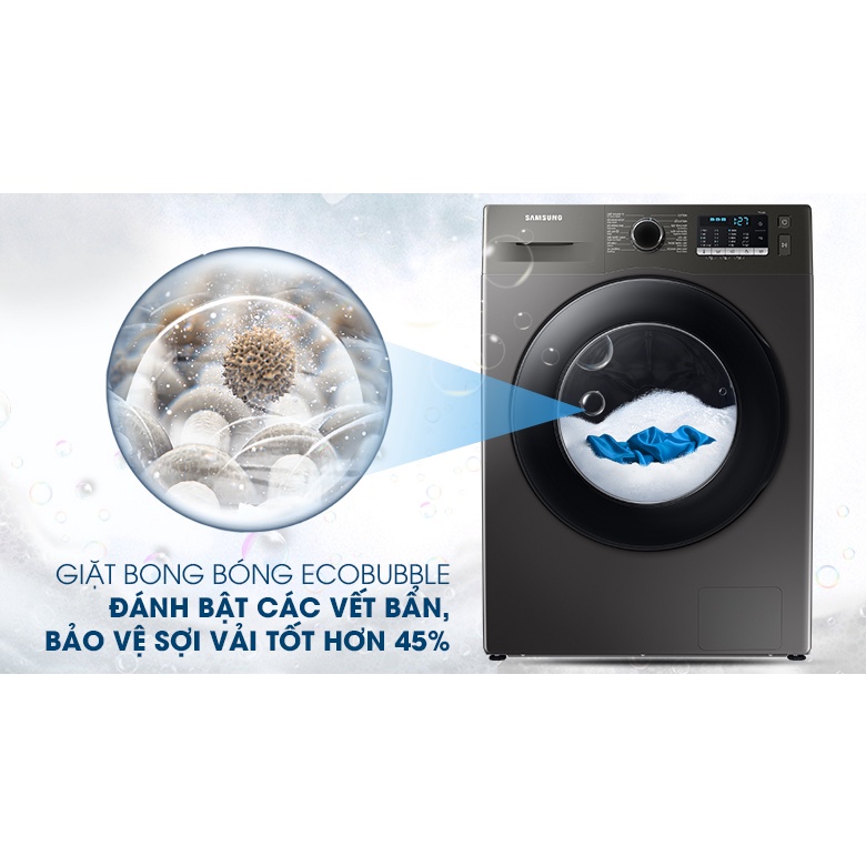 - Giặt sạch sâu, bảo vệ sợi vải tốt hơn 45% với công nghệ giặt bong bóng siêu mịn EcoBubble, đánh tan chất giặt tẩy với sự kết hợp giữa khí và nước, tạo thành bong bóng siêu mịn thẩm thấu vào sợi vải nhanh gấp 40 lần, đánh bật các vết bẩn hiệu quả tốt hơn 24% và loại bỏ cặn bám.