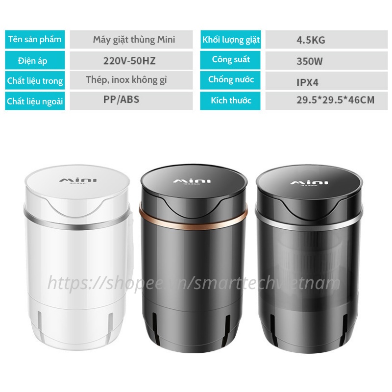 Smarttech giới thiệu sản phẩm:Máy giặt Mini thông minh 4,5kg chính hãng, Máy giặt vắt quần áo gia dụng nhỏ gọn khử trùng UV bằng công nghệ Blue Ag