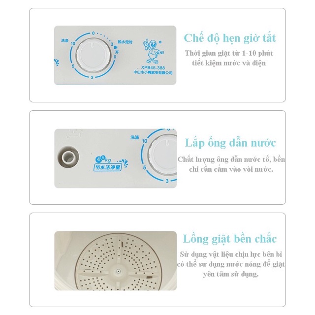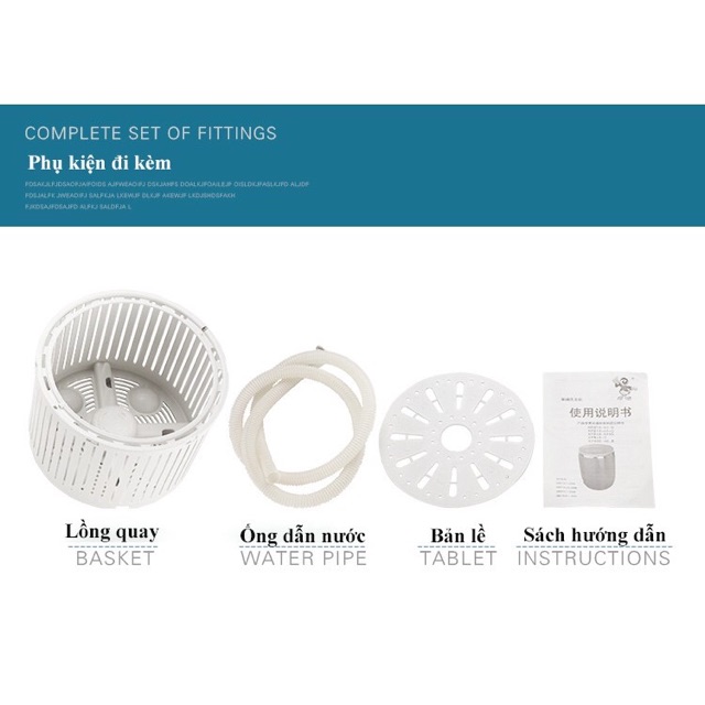 Phụ kiện sản phẩm: máy giặt, xô nước, nắp xô nước, ống dẫn nước, hướng dẫn sử dụng