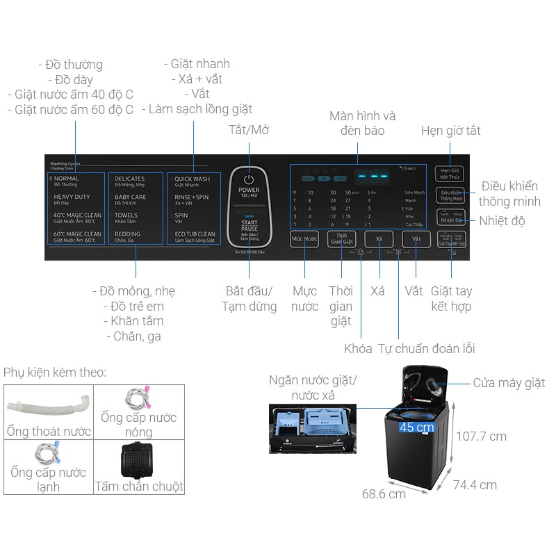 Công nghệ Magic Clean giặt nước nóng diệt khuẩn mức 40 và 60 độ C