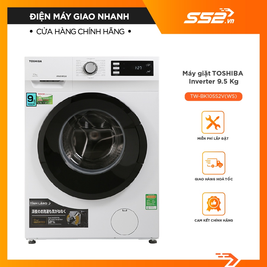 Bên cạnh đó, máy giặt Toshiba Inverter TW-BK105S2V(WS) sở hữu khối lượng giặt đến 9.5 kg, thích hợp cho những hộ gia đình có 5 - 7 người, hoặc ít hơn nhưng lại có nhu cầu làm sạch quần áo nhiều trong mỗi lần giặt.