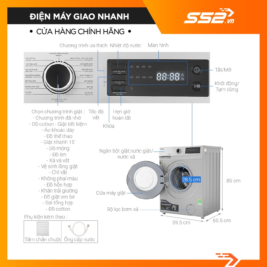Loại máy giặt: Cửa trướcLồng giặt: Lồng ngang