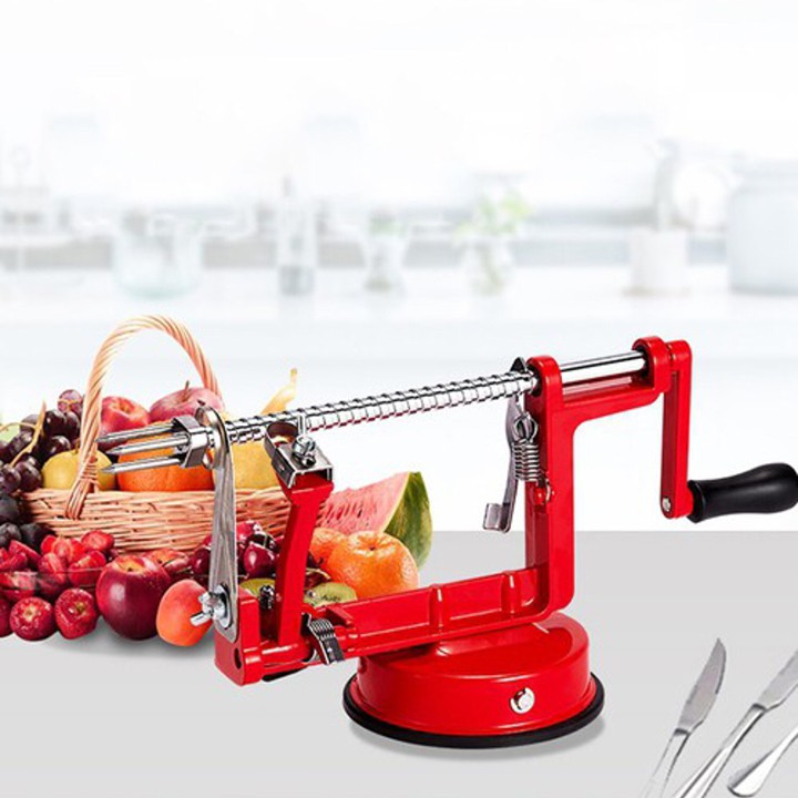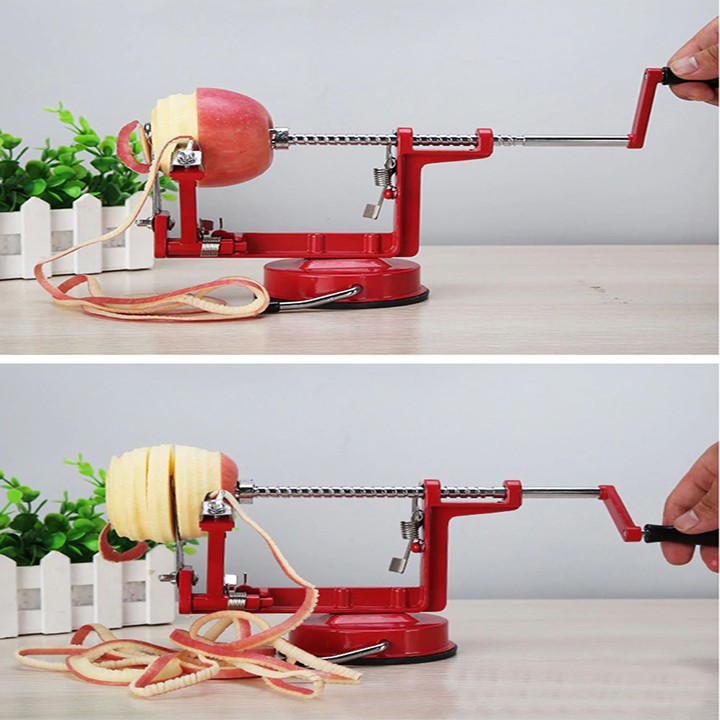 - Máy Gọt Vỏ Trái Cây có thiết kế bám sát vào mặt bàn giúp cho quá trình thái diễn ra dễ dàng hơn. Quy trình tháo lắp mát diến ra vô cùng đơn giản. Từ việc lắp chốt đế máy đến lắp khoai tây vào máy, lưỡi dao sắc bén giúp máy thái một cách dễ dàng.