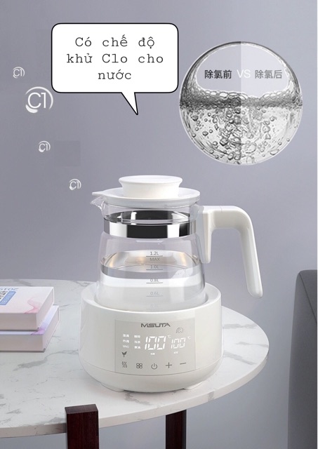 BÌNH ĐUN NƯỚC PHA SỮA MISUTA 1200ML HIỆN CÓ 3 BẢN CHO CÁC MẸ LỰA CHỌN NHA- Mẫu mới: Hâm nước từ 37-100 độ tuỳ ý, nút khử clo với nút đun sôi tích hợp làm 1 nút, mặt dưới nắp đậy bình là nhựa PP cao cấp chịu nhiệt