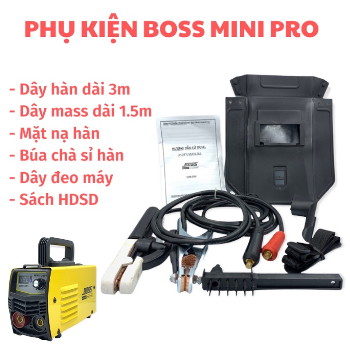 Nhà cửa & Đời sống > Dụng cụ & Thiết bị tiện ích > Dụng cụ > Dụng cụ hàn điện || Máy hàn BOSS ZX7-200 mini, Tặng full bộ kiện dây hàn và kính hàn, máy hàn điện tử Boss 200aCòn hàng