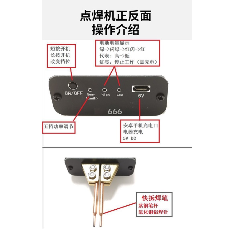 - sạc bằng sạc điện thoại cồng micro USB- không nên vừa sạc vừa hàn