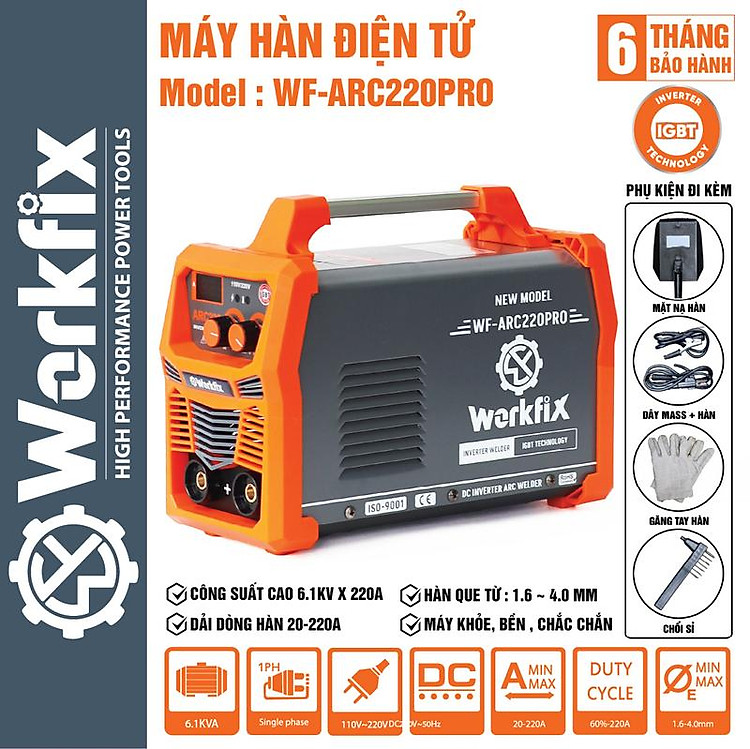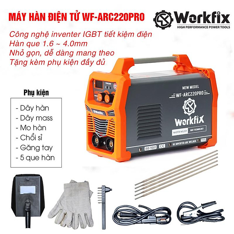 Máy Hàn Điện Đa Năng Workfix WF-ARC220PRO - Chức Năng Đánh Lửa Hồ Quang Điện - Lực Đẩy Gió Đá - Chống Dính - Hàn Que 1.6 - 4.0mm - Bảo Hành Chính Hãg 6 Tháng