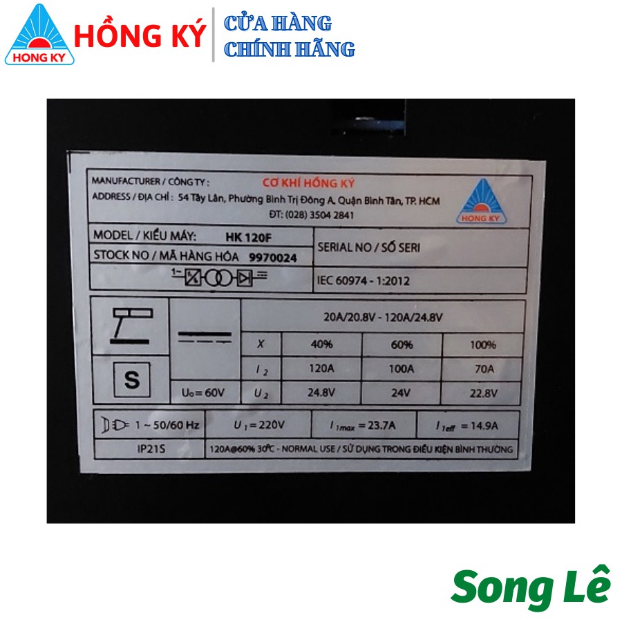 THÔNG SỐ KỸ THUẬT MÁY HÀN QUE QUE HỒNG KÝ HK 120F