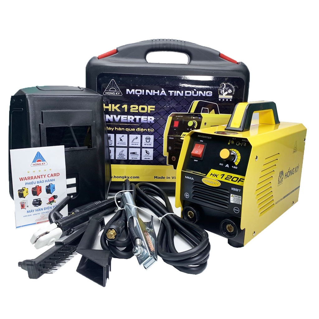 Nhà cửa & Đời sống > Dụng cụ & Thiết bị tiện ích > Dụng cụ > Dụng cụ hàn điện || Máy hàn điện tử Hồng Ký HK 120F, hàn que 2.6mm liên tục - Công nghệ IGBT, mồi lửa nhanh, tự động bù hồ quangCòn hàng