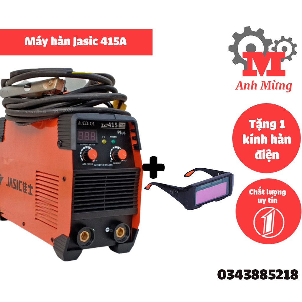 🛠 SHOP ĐIỆN MÁY KIM KHÍ TỔNG HỢP ANH MỪNG - một trong những cửa hàng bán máy móc trong lĩnh vực máy đo chuyên dụng, thiết bị đo lường và dụng cụ cầm tay uy tín, chất lượng.💫 Tên sản phẩm: Máy hàn điện tử Jasic 415A chất lượng cao, tặng kèm kính hàn điện tử