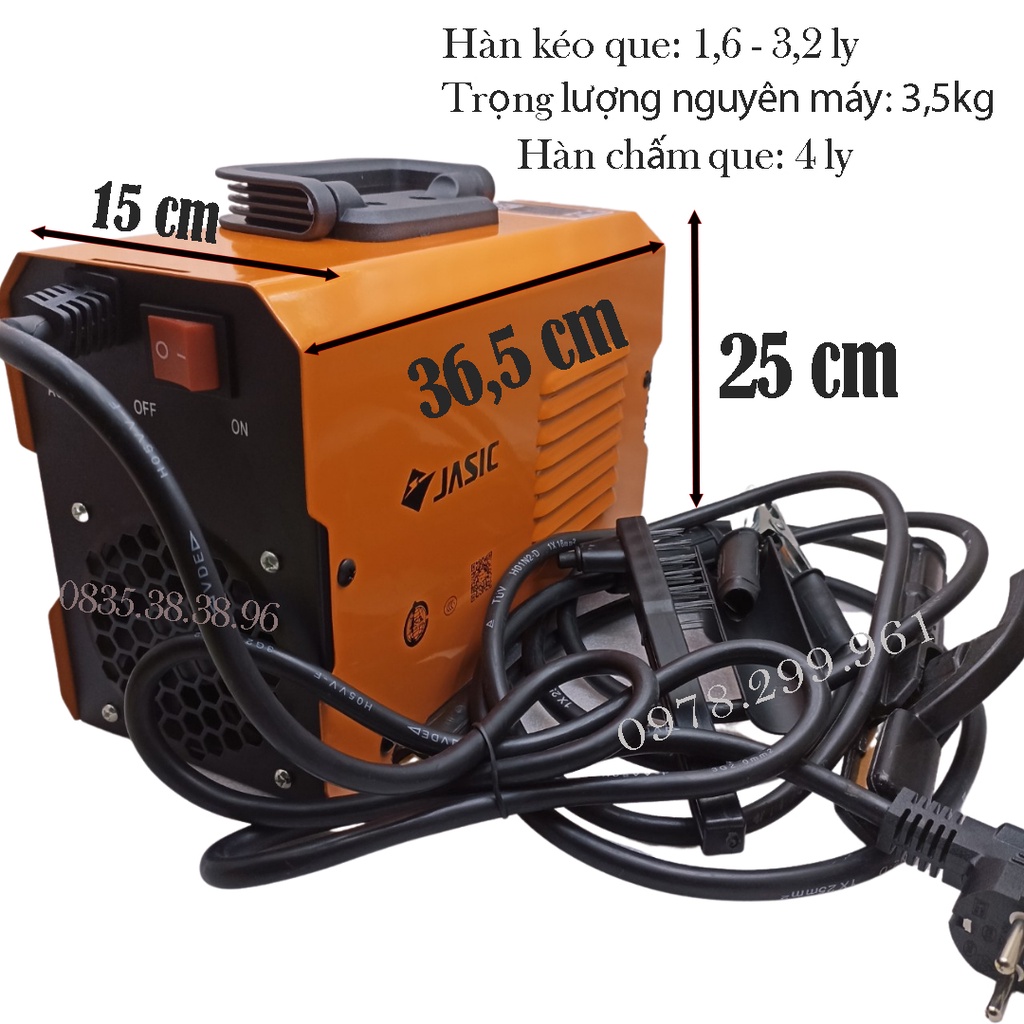 Máy hàn điện tử mini JASIC ARC - 200 có khả năng hàn que 1.6-3.2 ly,hàn liên tục với que 2.5ly,hàn chấm điểm với que 3.2ly. Vỏ máy có kết cấu chắc chắn, có dây đeo thuận tiện di chuyển, logo JASIC ARC - 200 dập nổi chống hàng giả.