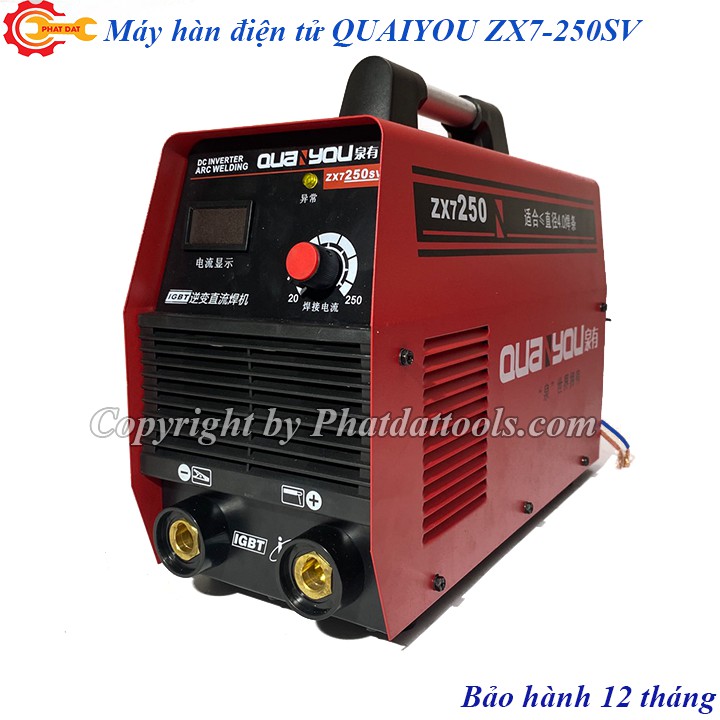 Máy hàn điện tử QUAIYOU ZX7-250SV có núm điều chỉnh dòng hàn,núm điều chỉnh hồ quang và mặt đồng hồ điện tử hiện thị chính xác dòng hàn,có đèn báo quá tải,chống giật.