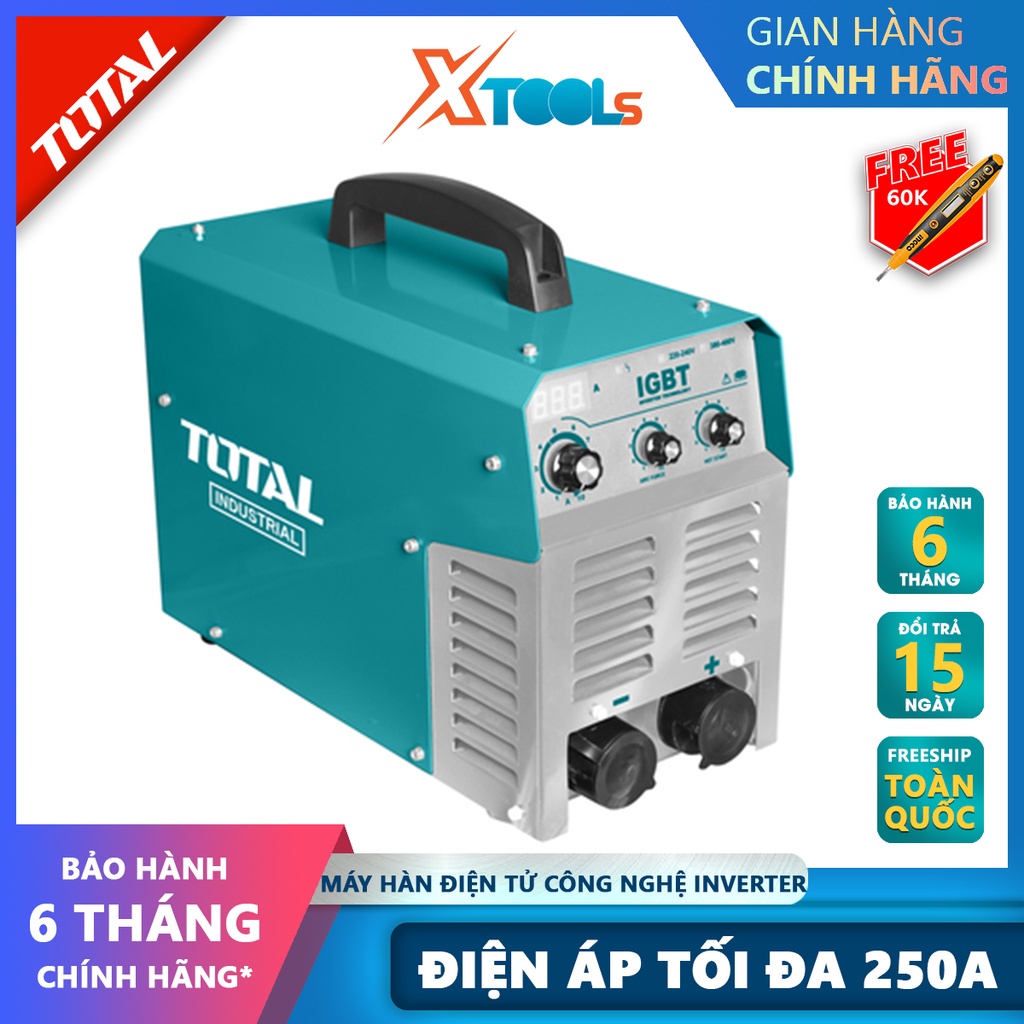 Máy hàn điện tử TOTAL TW22505 Máy hàn điện tử Inverter MMA Nguồn vào 13 kVA Dòng điện 20-250A Điện cực hàn Ø1.6-5.0mm