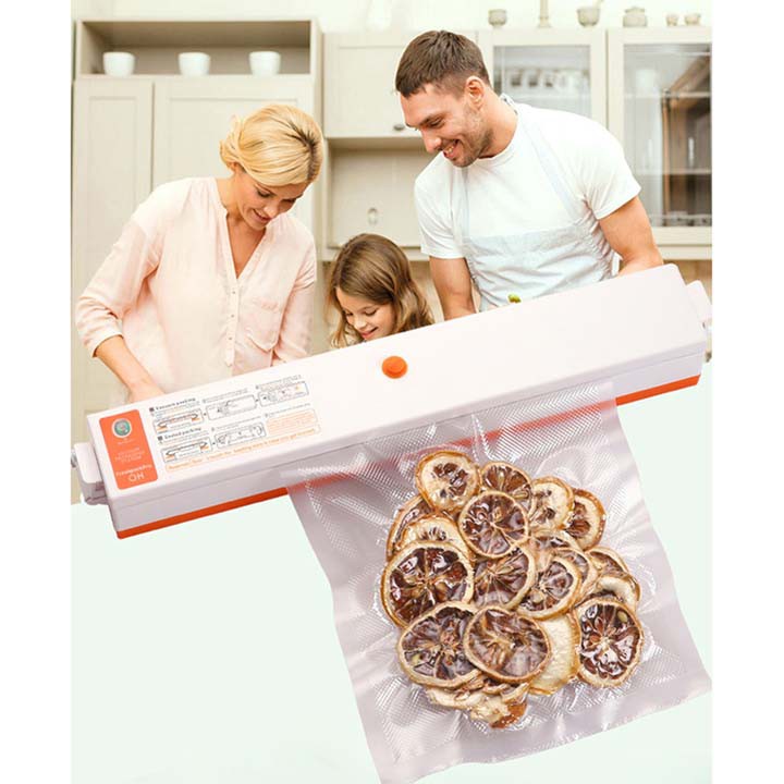 Máy hút chân không thực phẩm gia đình mini công nghệ Hàn Quốc là sản phẩm tiện ích sử dụng trong gia đình. Chuyên sử dụng cho việc bảo quản các loại thực phẩm, tươi, khô cũng như đóng gói các loại thực phẩm khác nhau. Giúp thực phẩm tươi ngon hơn, bảo quản lâu hơn, tiết kiệm diện tích trong khoang tủ lạnh của bạn.Sản phẩm sử dụng để đóng gói các loại thực phẩm khô như lạc, vừng, đậu đỗ,… hoặc các loại thịt cá khô. Với máy hút chân không thực phẩm không khí sẽ được rút ra tới 95%, ngăn ngừa sự phát triển của các vi khuẩn có hại và nấm mốc. Đối với thực phẩm tươi,sử dụng máy hút chân không sẽ giúp thực phẩm tươi lâu hơn tương tự như các loại thịt cá đông lạnh, thịt cá viên được bảo quản trong siêu thị.