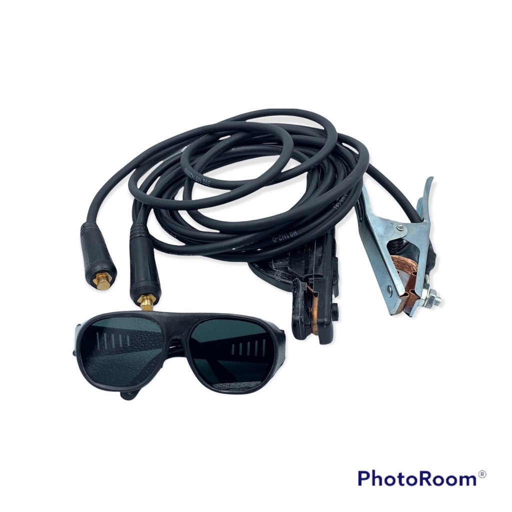 phụ kiện kèm theo máy gồm bộ dây hàn 3m, dây mass 2m + kính hàn