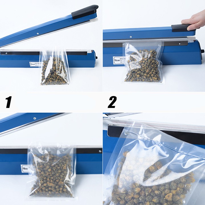 Máy hàn miệng túi dập tay giúp đóng gói sản phẩm an toàn và nhanh chóng, giúp bảo quản thực phẩm, đồ ăn bằng cách cho vào túi nylon và hàn kín miệng túi lại.