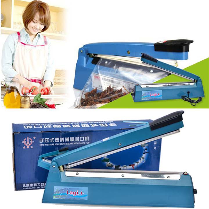 Là loại máy hàn miệng túi thủ công thao tác sử dụng bằng cách dùng tay nhấn cần dập xuống để hàn mép túiMáy sử dụng nguồn điện dân dụng 220V, công suất nhỏ, phù hợp với việc đóng gói các loại túi nhỏ