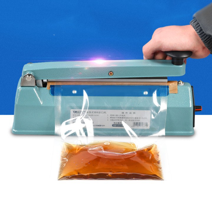 - Máy hàn miệng túi FPS200 20CM (xanh) được dùng phổ biến trong các hộ gia đình, siêu thị, nhà bếp hoặc các cửa hàng, chẳng hạn như cửa hàng cafe, cửa hàng bánh kẹo, gian hàng ăn nhanh, cửa hàng thuốc, nhà máy nhỏ,… Với giả cả phải chăng và dễ dàng sử dụng, máy hàn mép túi dập tay đang là loại máy được sử dụng thông dụng nhất.