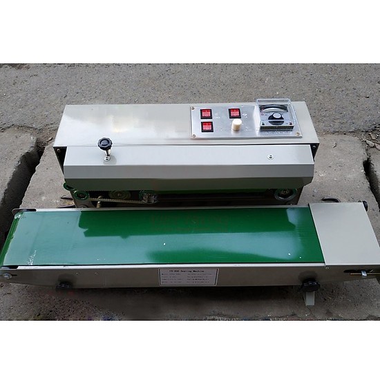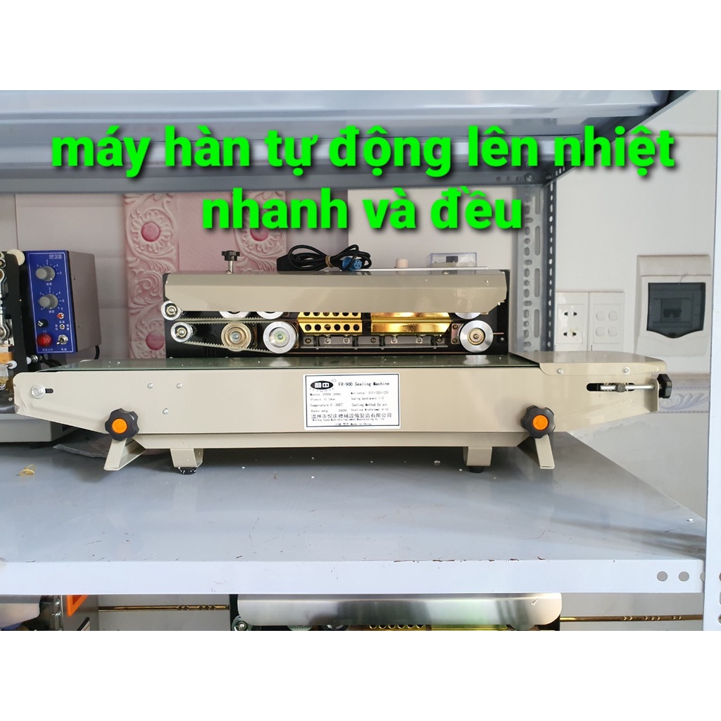 - Máy hàn túi liên tục FR-900 là máy hàn miệng túi có băng tải có thể điều chỉnh cao thấp bằng tay quay và điều chỉnh tốc độ bằng núm xoay.