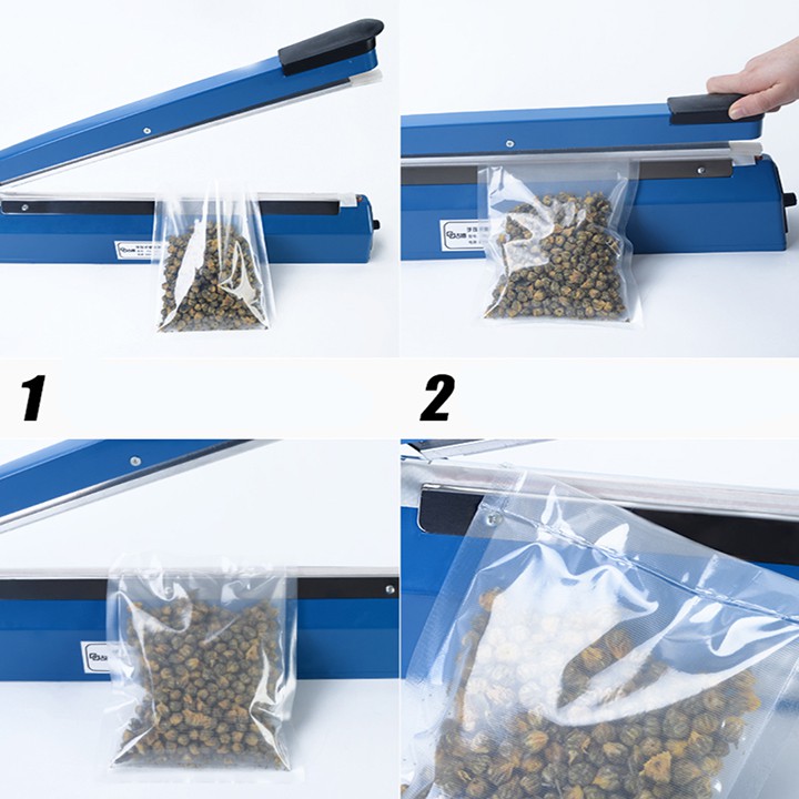 Đối với các cửa hàng tạp hóa hay các shop bán hàng online sẽ dùng máy hàn miệng túi dập tay này để đóng gói thực phẩm, đồ khô, đồ tươi để tránh bụi bặm và sạch sẽ hơn, an toàn hơn, thời gian lưu trữ thực phẩm cũng cao hơn và sạch sẽ hơn cho người sử dụng. Đặc biệt hơn đó là tránh được kiến, gián, hay thậm chí các loại vi khuẩn gây bệnh