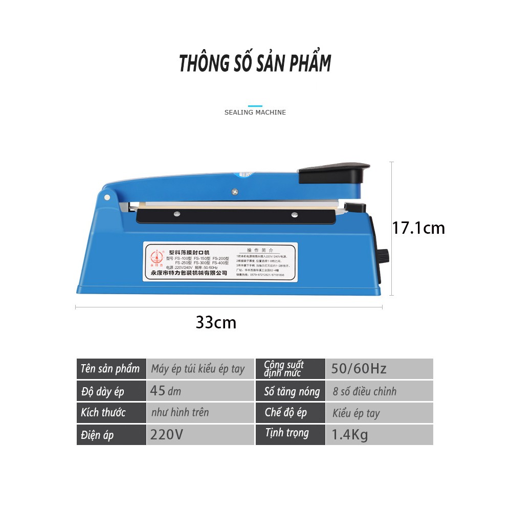 Máy hàn miệng túi nilon túi zip dập tayđể bảo quản thực phẩm, bọc sản phẩm bán hàng, cắt màng co -Hạn bảo hành 3 tháng