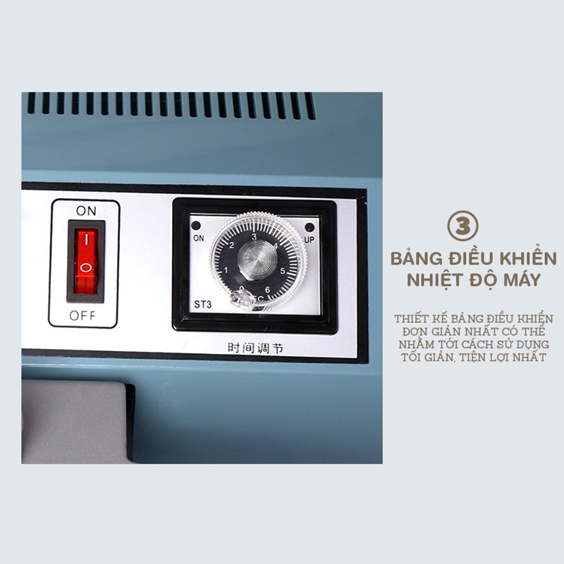 Đặc biệt, máy hàn miệng túi còn có thêm nút công tắc dừng khẩn cấp, khi cần bạn có thể dùng khi gặp sự cố nào đó.