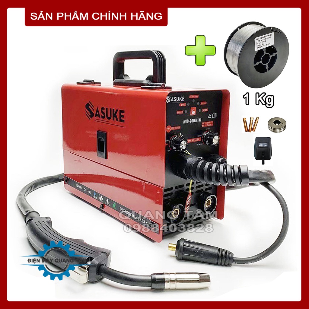 Máy Hàn MIG Không Khí + Có Khí + Que 3 Chức Năng Sasuke MIG-200 Mini + 1 Cuộn Dây Hàn 1Kg [Chính Hãng]