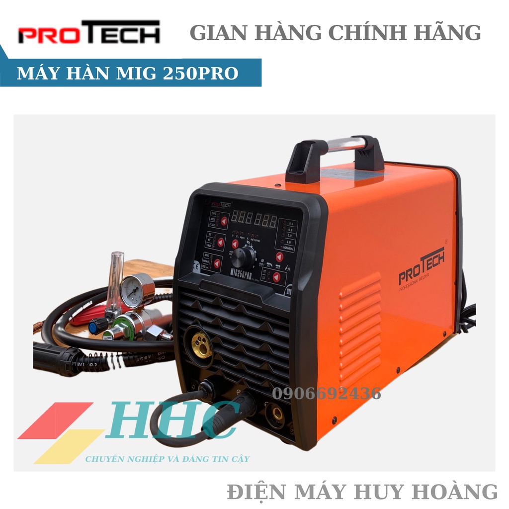 Máy hàn MIG không sử dụng khí 5 chức năng MIG 250Pro Protech thương hiệu - Tặng kèm 12 món quà, hàn mig chuyên nghiệp