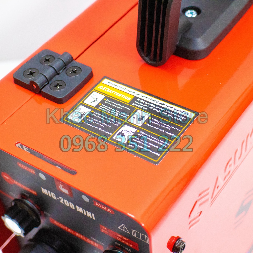 - Máy hàn Mig không dùng khí SASUKE 200 mini 3 chức năng với dòng hàn 200A giúp dễ mồi hồ quang điện, hồ quang cháy êm, mối hàn được bóng đẹp, ngấu.