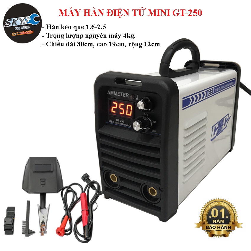 Máy hàn mini, máy hàn điện tử công nghệ inverter GT-250 hàn kéo que 3,2, bảo hành 1 năm