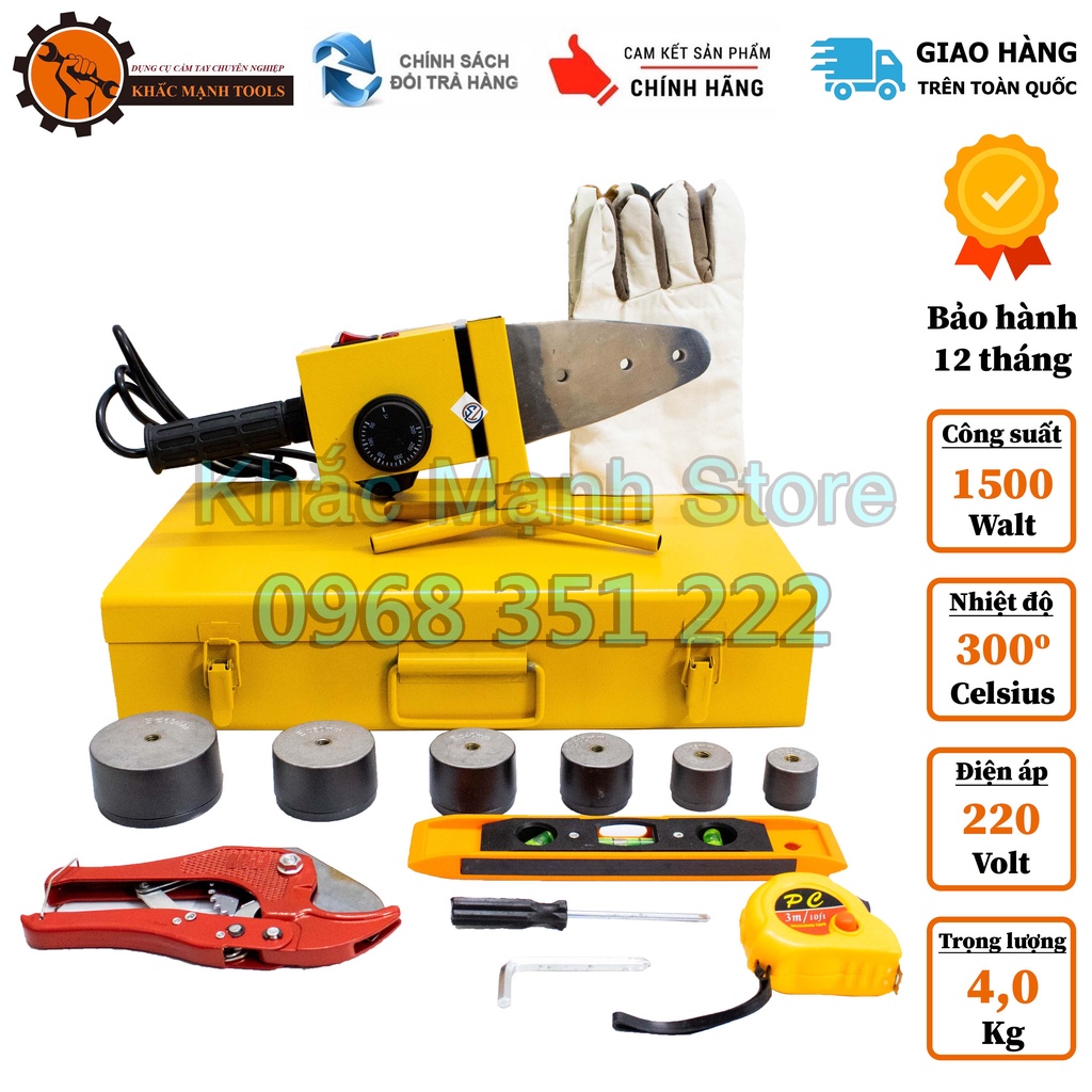 Máy hàn ống nhiệt PPR chuyên dụng hàn nối các loại ống cấp nước sạch chất liệu PPR, Máy hàn ống nhiệt PPR được thiết kế nhỏ gọn nhưng đầy mạnh mẽ với công suất 1500W làm nóng cực nhanh,thân máy liền với tay cầm rất chắc chắn,vỏ máy bằng chất liệu hợp kim nhôm sáng bóng,chịu nhiệt cực tốt tới hơn 600°C