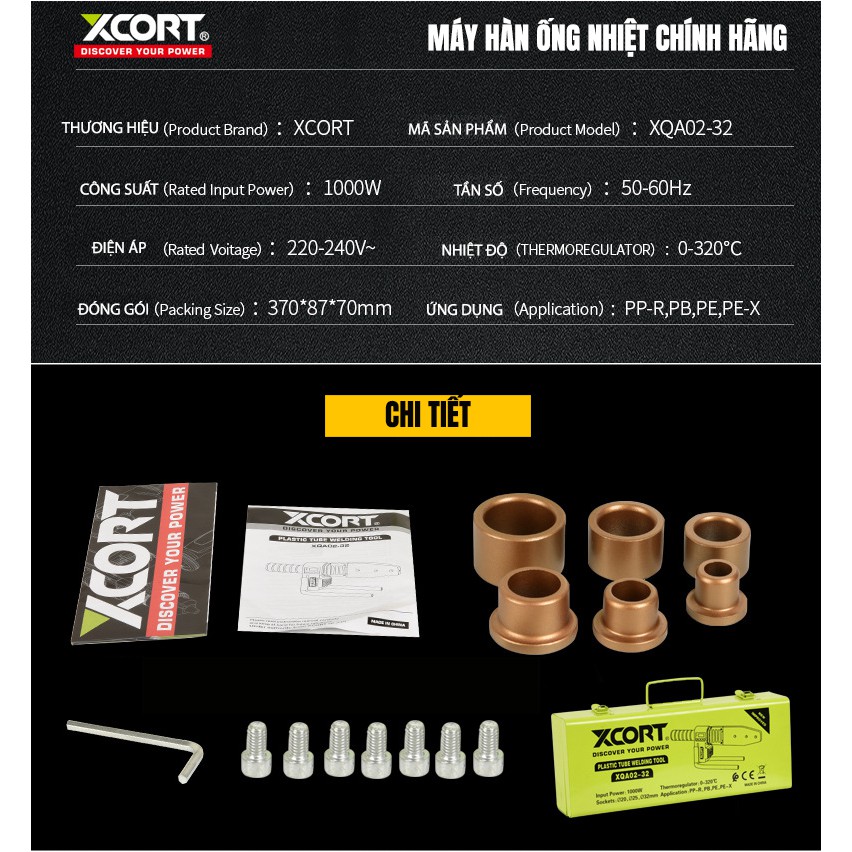 Máy hàn ống nhiệt XCORT chuyên dụng hàn nối các loại ống cấp nước sạch chất liệu PPR, Máy hàn ống nhiệt PPR 63A được
