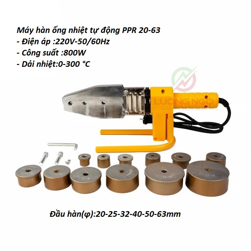 Máy hàn ống nhiệt tự động PPR 20-63 cao cấpMáy hàn ống nhiệt PPR 563B chuyên dụng hàn nối các loại ống cấp nước sạch chất liệu PPR, Máy hàn ống nhiệt PPR 63A được thiết kế nhỏ gọn nhưng đầy mạnh mẽ với công suất 800W làm nóng cực nhanh,thân máy liền với tay cầm rất chắc chắn,vỏ máy bằng chất liệu hợp kim nhôm sáng bóng,chịu nhiệt cực tốt tới hơn 600°C
