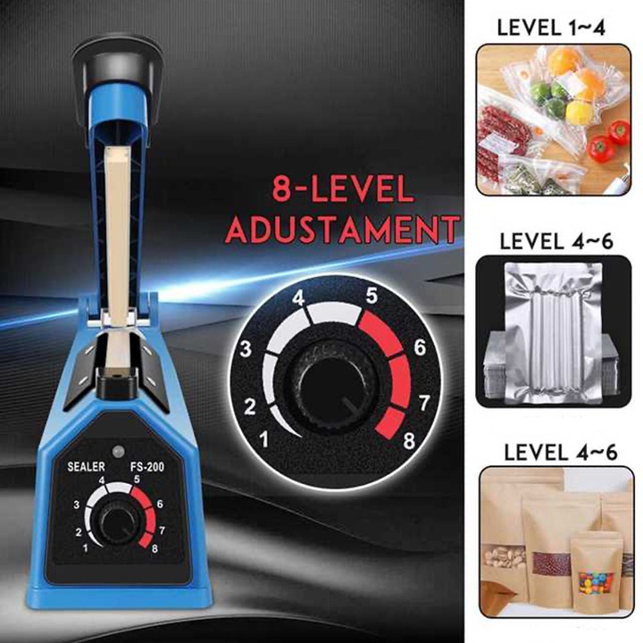 - Máy hàn miệng túi FPS200 20CM (xanh) được dùng phổ biến trong các hộ gia đình, siêu thị, nhà bếp hoặc các cửa hàng, chẳng hạn như cửa hàng cafe, cửa hàng bánh kẹo, gian hàng ăn nhanh, cửa hàng thuốc, nhà máy nhỏ,… Với giả cả phải chăng và dễ dàng sử dụng, máy hàn mép túi dập tay đang là loại máy được sử dụng thông dụng nhất