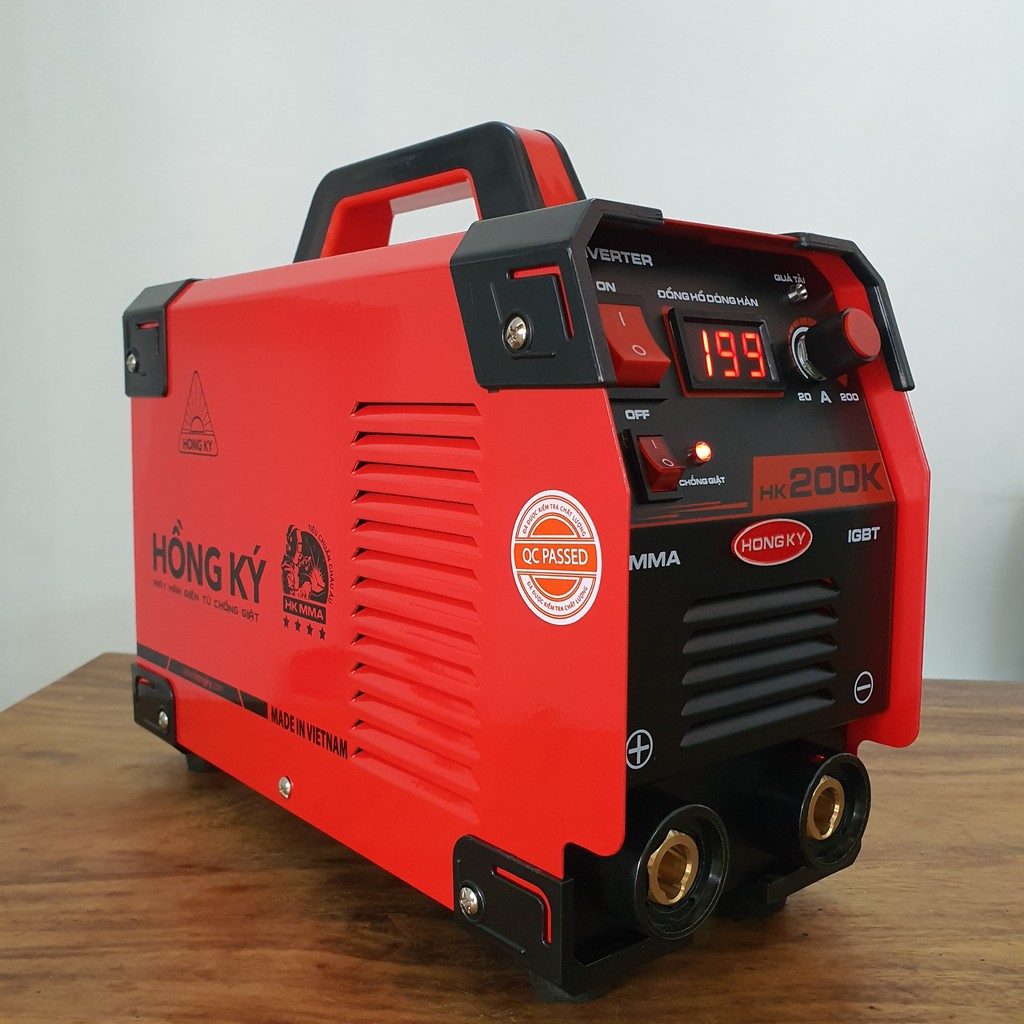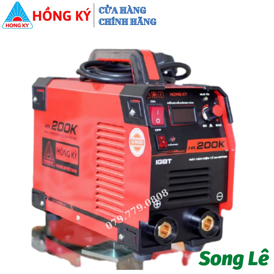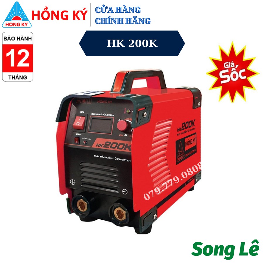 - Máy hàn điện tử Hồng ký HK 200K chính hãng ứng dụng công nghệ INVERTER ARC có công suất đầu ra 7.0 KVA mạnh mẽ cho phép làm việc hiệu quả nhanh chóng thích hợp sử dụng cho que hàn từ 2.6 – 3.2mm.