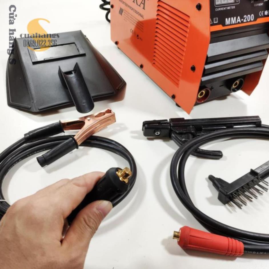 Phụ kiện đi kèm : Dây kẹp hàn , 1 dây kẹp mass , Búa gõ xỉ, 1 mặt nạ hàn